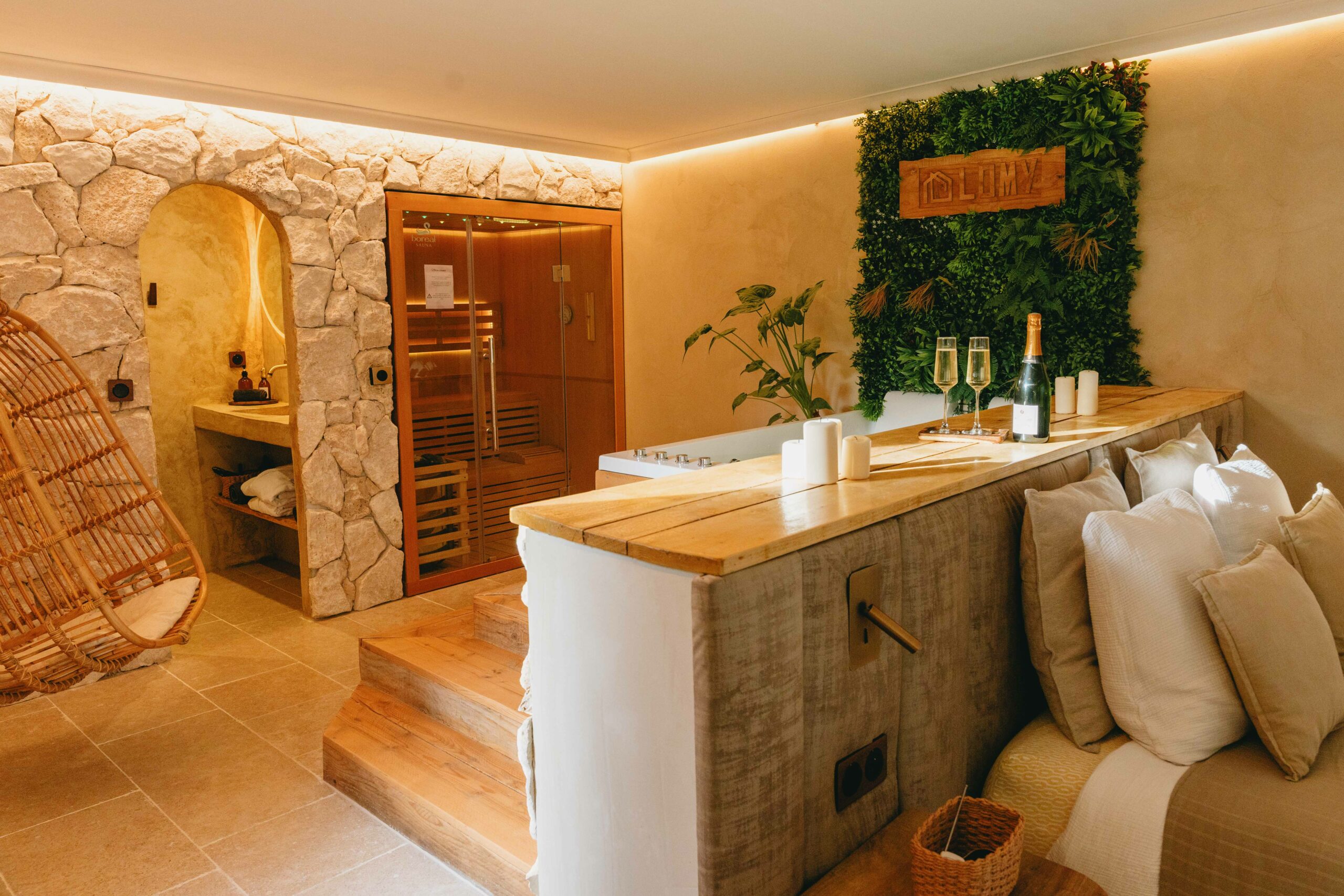 Cette suite de 50 m², totalement indépendante, garantit intimité et tranquillité. Elle dispose d’un espace bien-être privatif, accessible 24h/24 tout au long de votre séjour, avec sauna et balnéo massante, pour un moment de relaxation absolue.